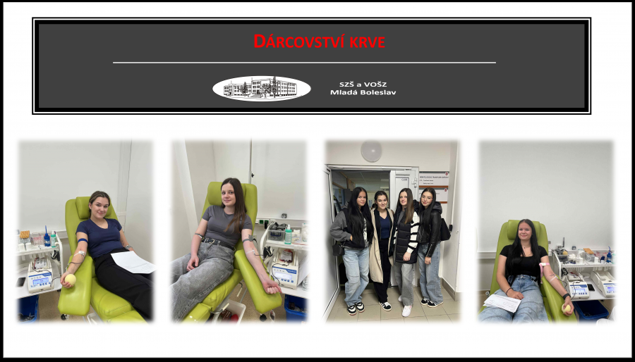 Lucie Myšková, Nikola Vlasatá, Terezie Smolková a Karolína Bulířová ze třídy 4. PA se staly novými registrovanými dárkyněmi krve. Jsme hrdí, že se připojily k řadě našich žáků, kteří pravidelně darují krev a pomáhají tak zachraňovat lidské životy. Všem patří velké poděkování!