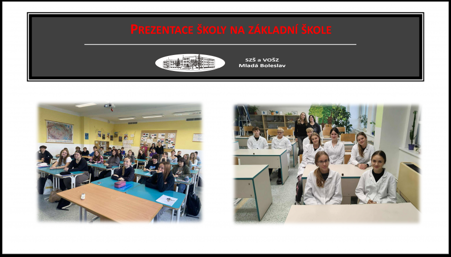Prezentace naší školy pro poslední ročníky základních škol stále pokračuje. Na 2. ZŠ představili studijní obory Vivi, Kuba a Natka ze 2. ročníku, zatímco žáci 9. tříd z 3. ZŠ navštívili přímo naši školu, kde se seznámili s nabízenými obory i prostředím školy. Děkujeme všem studentům za příkladnou reprezentaci a aktivní přístup.