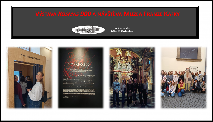 Dne 2. října 2025 se třída 3.ZL vydala do Prahy na výjimečnou výstavu Kosmas 900, pořádanou u příležitosti 900. výročí úmrtí našeho nejstaršího kronikáře. V historických prostorách Klementina studenti obdivovali rukopisy i tištěné verze Kosmovy kroniky. Druhá část dne patřila Muzeu Franze Kafky, kde si studenti rozšířili literární obzory a připravili se na maturitní témata i nový film Franz režisérky Agnieszky Holland.